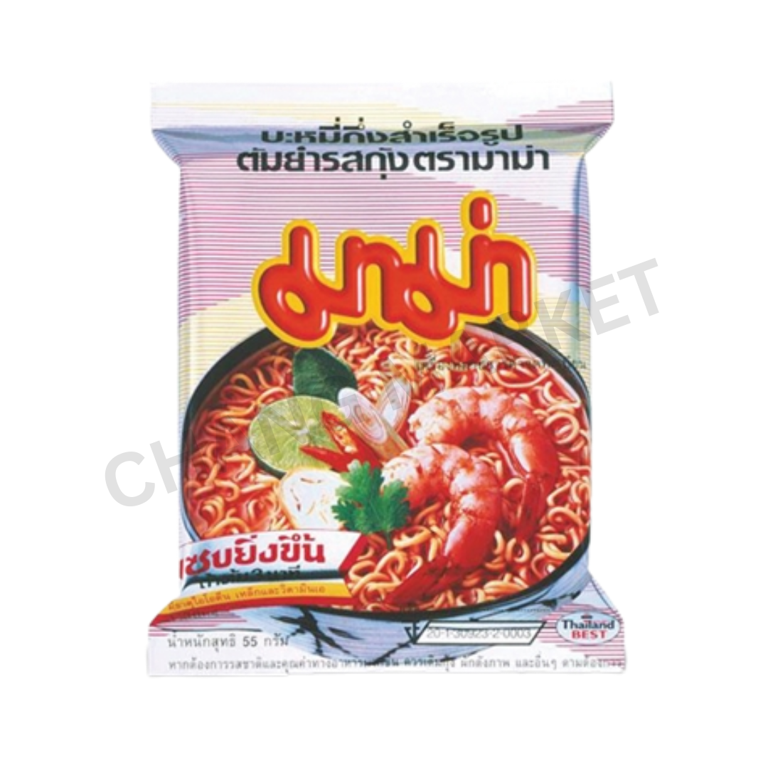 MAMA Instant Noodles – Tom Yum Koong flavour, spicy, tangy and aromatic with Thai herbs.
